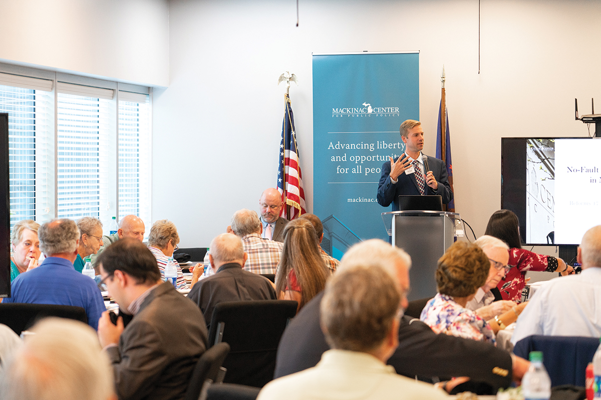 The Aug. 21 Policy Forum in Portage focused on the upcoming changes to Michigan’s auto insurance system. Van Beek spelled out why our auto insurance has been so expensive for so long and how much Michigan motorists might save under the reforms on the way.