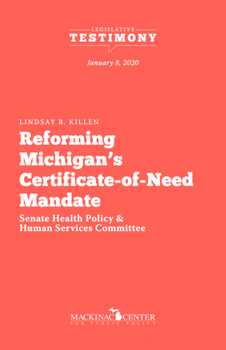The following is testimony presented to the Senate Health Policy & Human Services Committee by the Mackinac Center’s Vice President for Strategic Outreach and Communications Lindsay B. Killen on January 8, 2020.