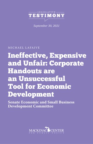The following is testimony submitted for presentation to the Senate Economic and Small Business Development Committee by the Mackinac Center’s Michael LaFaive on September 30, 2021.