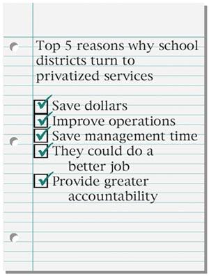 Other reasons school districts privatize non-educational services include saving management time, a contractor's ability to do a better job, and the ability to provide greater accountability.
