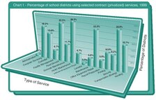While more school districts are abandoning privatized services altogether, there is a representative sample that actually is increasing the amount of outsourced services already in place. In 1997, 5.2% of school districts contracted out five or more services; in 1999, 15% do. It seems those that have experimented with outsourcing in a number of areas are more likely to add additional services, while those that test the waters on a smaller scale (outsourcing only one or two services) are more likely to discontinue the practice altogether if unhappy with the results.