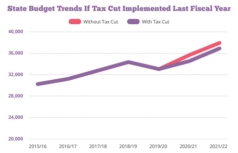 The state has a balanced budget requirement, which means that reduced revenue has to be paired with lower state spending. The good news, however, is that state revenue is also growing, thanks to a growing economy. This means that lawmakers can afford to lower tax rates without having to lower spending. They can pass a tax cut and increase the state budget simultaneously, provided there is enough revenue growth. And administrators expect sufficient revenue growth.