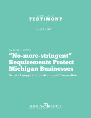Legislators should recognize that repealing the “no-more-stringent” requirements by passing SB 14 would represent a regressive step backward for the state of Michigan. Passing SB 14 would impose an additional layer of duplicative and expensive regulatory pressures on businesses with no real environmental benefits.
