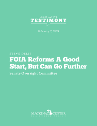 My name is Steve Delie, and I am the Director of Open Government at the Mackinac Center. We area 501(c)(3) nonprofit research and educational institute that advances the principles of free markets and limited government. Through our programs, we challenge government overreach and advance free-market approaches to public policy that free people to realize their potential and dreams. I also serve as the Executive Director of the Michigan Coalition of Open Government, which is a coalition of pro-transparency advocates from across the political spectrum. I write today to support Senate bills 669 and 670.