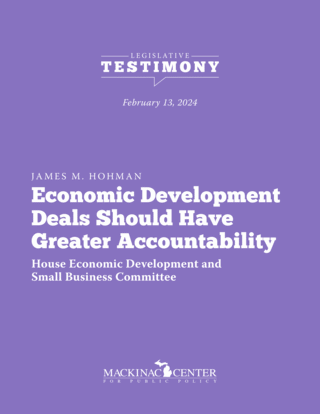 My name is James Hohman and I am the director of fiscal policy at the Mackinac Center. I am here to testify against House Bills 5413 – 5415. An economic development program ought to be judged based on how much it develops the economy, as I said in my testimony to you last week about film subsidies.