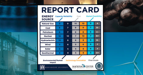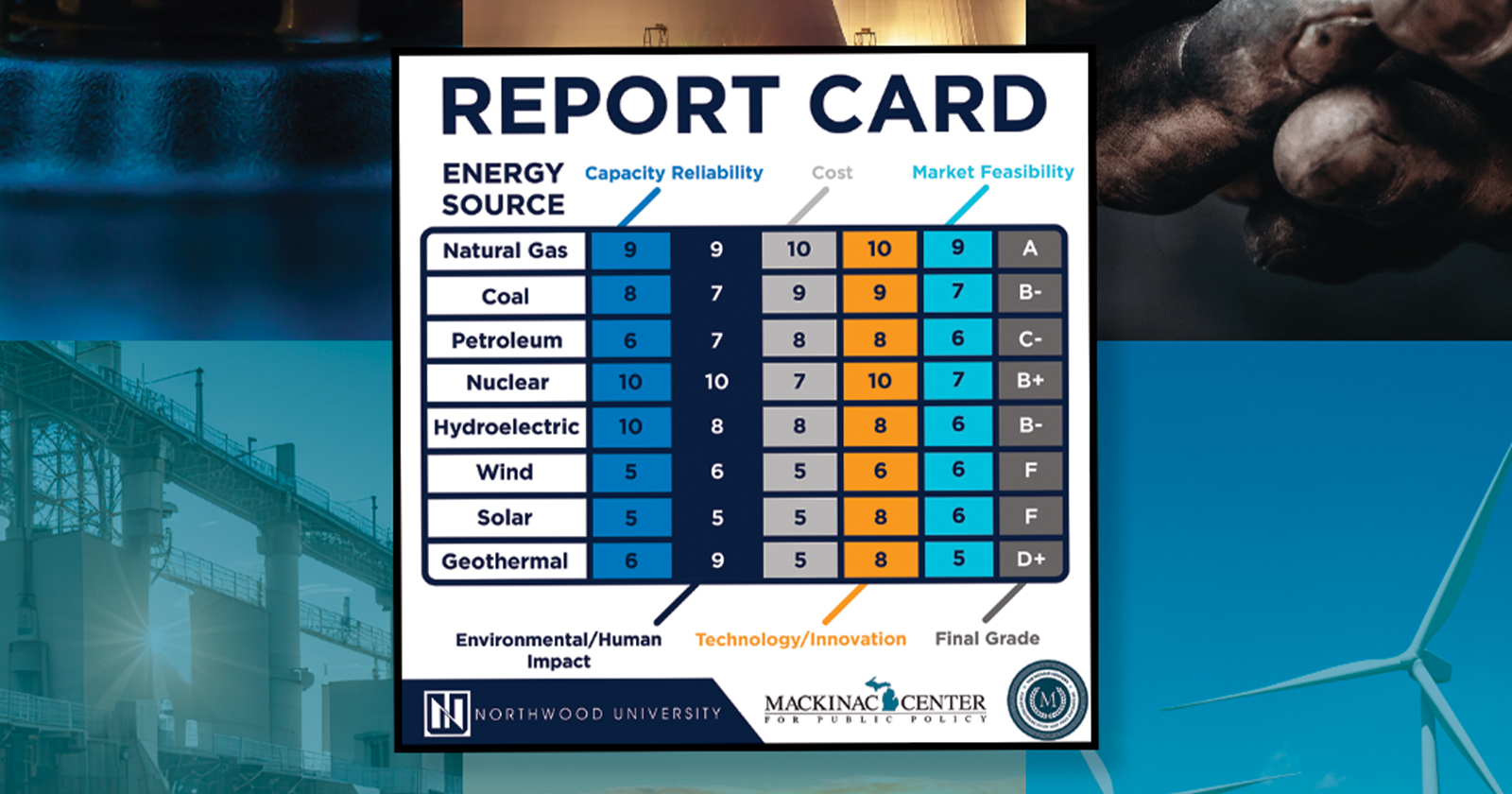Northwood University’s McNair Center for the Advancement of Free Enterprise and Entrepreneurship partnered with the Mackinac Center to produce an energy report card that grades eight energy sources by how well they meet society’s needs.
