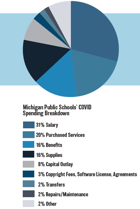 Klutts also puts this extra funding into its proper context. Six billion dollars is a lot of money, but school districts in Michigan already receive far more. In the three years since the pandemic began, districts spent $86 billion. Only 3% of that was from federal COVID relief funds. The emergency funds are a drop in the bucket.