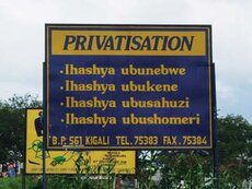 Indeed, the photograph seen here, taken last year outside the airport in Kagali, Rwanda gives reason for hope. The sign in the photograph is written in Swahili and reads: "Privatization fights laziness, privatization fights poverty, privatization fights smuggling, and privatization fights unemployment." I have always been heartened when cultures begin to believe in their own economic potential, particularly cultures that have been so oppressed by government-sponsored central planning.