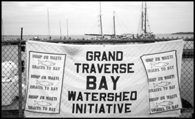 The Grand Traverse Bay Watershed Initiative was formed in 1991 to protect the water quality of the Grand Traverse Bay. The Initiative takes a partnership approach to protecting water quality based on watersheds (land that water flows across or under on its way to a stream, river, or lake). The partnership is between the many private and public sector organizations working to reduce pollution from nonpoint sources, which include such things as agricultural chemicals and road salt. Since nonpoint source pollution comes from many, many small sources instead of a few large ones, it is harder to control throughout the watershed.