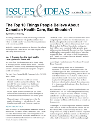 The irony is that as the health care budget expands in Canada, it is crowding out many of these other forms of public spending. For example, the provinces, who have responsibility in Canada for the delivery of most services, such as health care, primary, secondary and post-secondary education, roads, environmental protection, water provision, etc. have seen health rise from around 30% of provincial program spending to nearly 50%. In all provinces it is expected to exceed 50% within a decade. And Canada’s tax burden is about 8-10 percentage points of GDP higher than the United States, so that our tax burden is uncompetitive with you, our major market and major competitor, while the health care budget is cannibalizing scarce public dollars that could be spent on things much more likely to produce superior population health outcomes. But the politics of health spending is powerful, and have proven nearly irresistible to date.