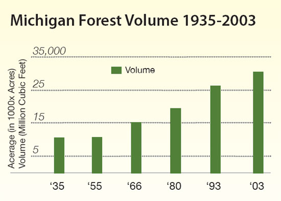 The number of trees in Michigan has increased nearly three-fold in 70 years.