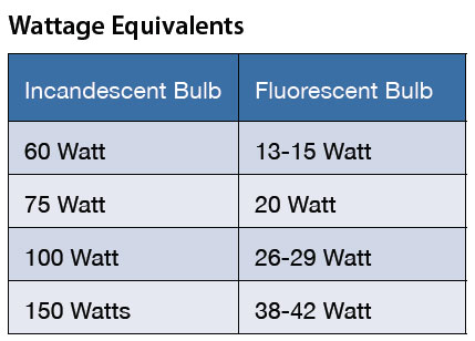 A fluorescent light, by contrast, produces 50 to 100 lumens per watt, depending on the type of bulb. Thus, the fluorescent light is four-to-six times more energy efficient than the incandescent variety. As the chart to the right indicates, a fluorescent bulb uses much less electricity to produce the same amount of light as an incandescent bulb.