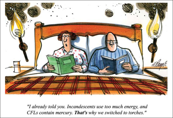 Thomas Edison’s monumental gift to modernity, the incandescent light bulb, no longer will be sold in Australia, Canada, Cuba or Venezuela within five years. Similar phase-outs are pending in California, New Jersey and several other states as well as the European Union. Ban-the-bulb advocates contend that Edison’s creation is inefficient and that fluorescent lights are far more environmentally friendly. While this is certainly true in some respects, it is not exclusively so. Moreover, lighting alternatives now under development may soon prove to be superior to both incandescent and fluorescent bulbs.[1]