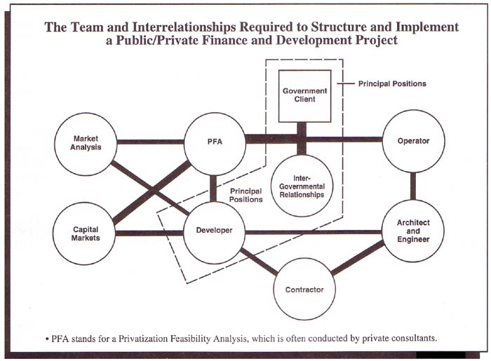 There are many ways to structure public/private development projects. Three techniques increasingly employed around the world include: