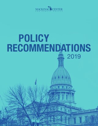 This publication lists policy recommendations assembled by Mackinac Center policy experts. These are timely policy ideas for the 2019 Legislature to consider and include reforms related to Michigan's educational, fiscal, environmental, labor, health care, transparency and criminal justice needs.