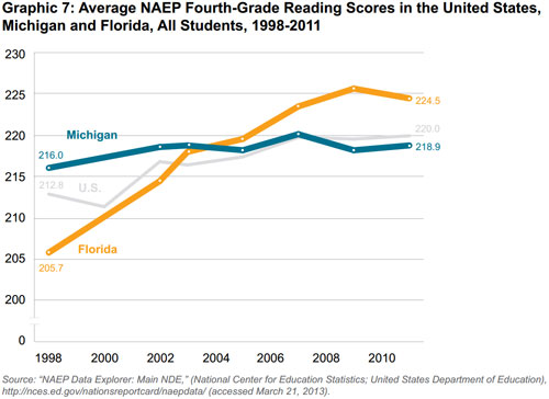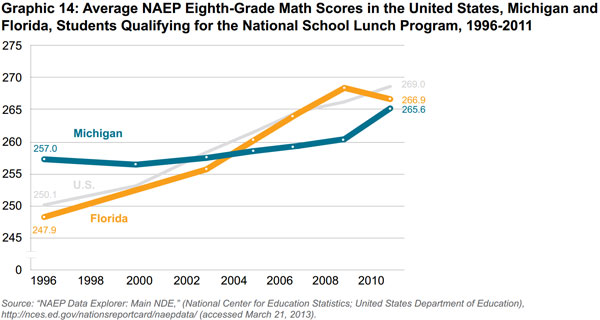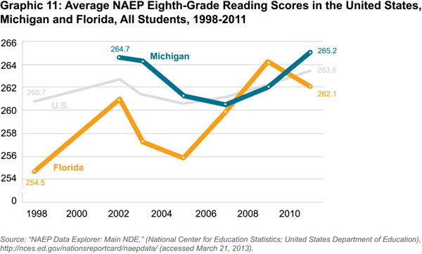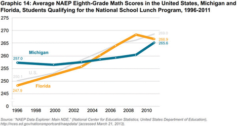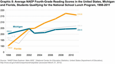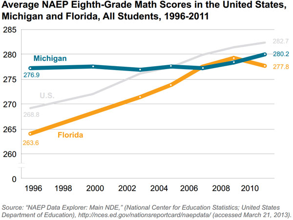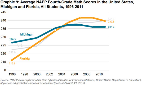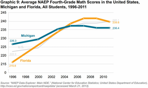 This study is an examination of Florida and Michigan's performance on the National Assessment of Educational Progress's (NAEP) standardized test, often referred to as "the nation's report card." Immediately prior to and during Florida's immense improvement on these scores from the past 15 years, the state made substantial changes to its public education system. Some of these policies have been rigorously studied and have shown a positive impact on Florida students that Michigan should emulate to improve its static performance.