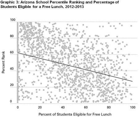 Graphic 3: Arizona School Percentile Ranking and Percentage of Students Eligible for a Free Lunch, 2012-2013
