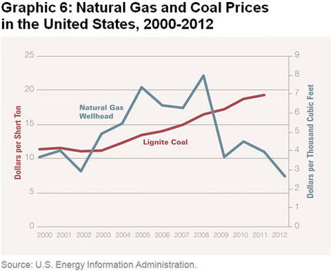 Graphic 6: Natural Gas and Coal Prices in the United States, 2000-2012