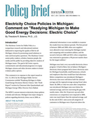 Electricity Choice Policies in Michigan: Comment on "Readying Michigan to Make Good Energy Decisions: Electric Choice"