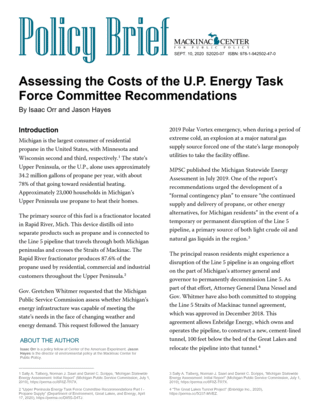 We analyze the potential impacts and feasibility of these recommendations in the pages that follow. We also explore the use of alternative fuels to propane such as natural gas and electricity to provide for winter heating needs in the Upper Peninsula. Five key points summarize our review of the task force’s recommendations.