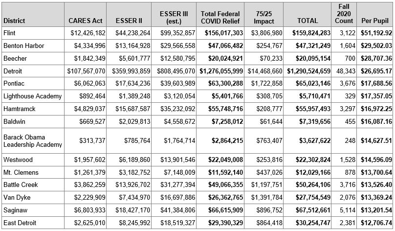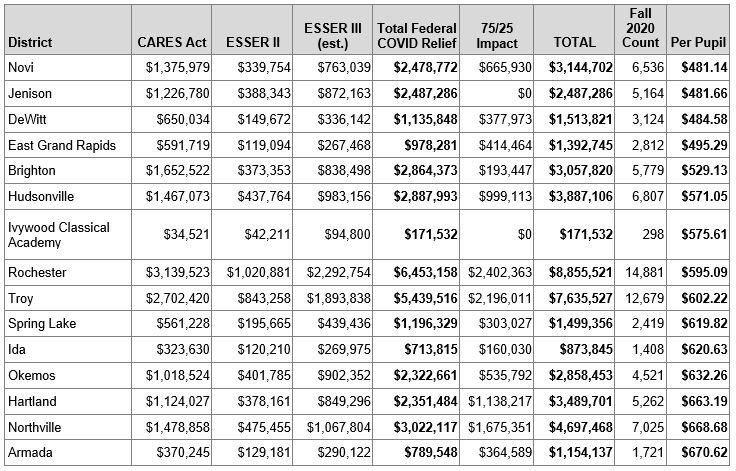 Adding Up the Extra COVID-19 Funding for Michigan Public Schools