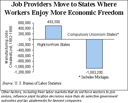 A recent report from the State Policy Network ranked North Carolina ahead of Michigan in economic freedom. Michigan does not need more subsidies and abatements to become more competitive with my state. It needs what we have in North Carolina: Less government and a right-to-work law that prohibits compulsory unionism. As long as Michigan taxes its citizens more than we tax ours, and as long as a million Michigan workers are compelled to finance Big Labor, North Carolinians will not worry about MEGA and other programs like it.