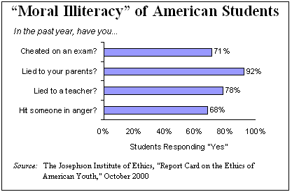 In the decade since the Harris poll and the Kidder speech, things have not improved. The nonpartisan Joseph & Edna Josephson Institute in Los Angeles reported in October that the "hole in the moral ozone" remains highly disturbing.