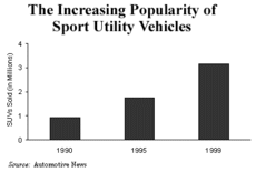 The findings are obviously good news in terms of safety, but they are also good news in terms of the health of Michigan's economy. Hundreds of thousands of Michigan workers are involved in producing autos for the world market, and SUVs have become the industry's proverbial goose that laid the golden egg. SUVs accounted for 38.6 percent of truck sales in 1999, a year when more than 3.1 million new SUVs were sold. SUVs comprise 43 percent of the vehicles on the road today. In some years, Ford Explorers account for 20 percent of the company's profit.