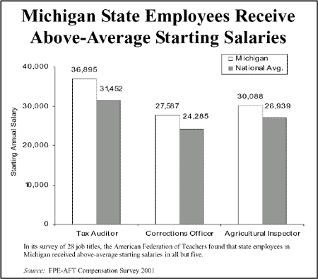 Has the current process disserved Michigan employees? Surveys from both the Office of the State Employer and the American Federation of Teachers show that in most employment categories, Michigan employees are paid more than the nationwide average for state workers and more than the average for private-sector Michigan workers.