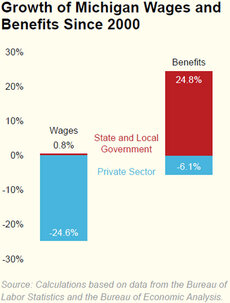 Mackinac Center research has shown that the state could save $5.7 billion annually by bringing government benefits in line with private-sector averages. The cost of those benefits has risen 25 percent since 2000, after adjusting for inflation, even as average incomes for Michigan taxpayers fell by 20 percent. In short, while households and small businesses struggled, those employed by government were protected.
