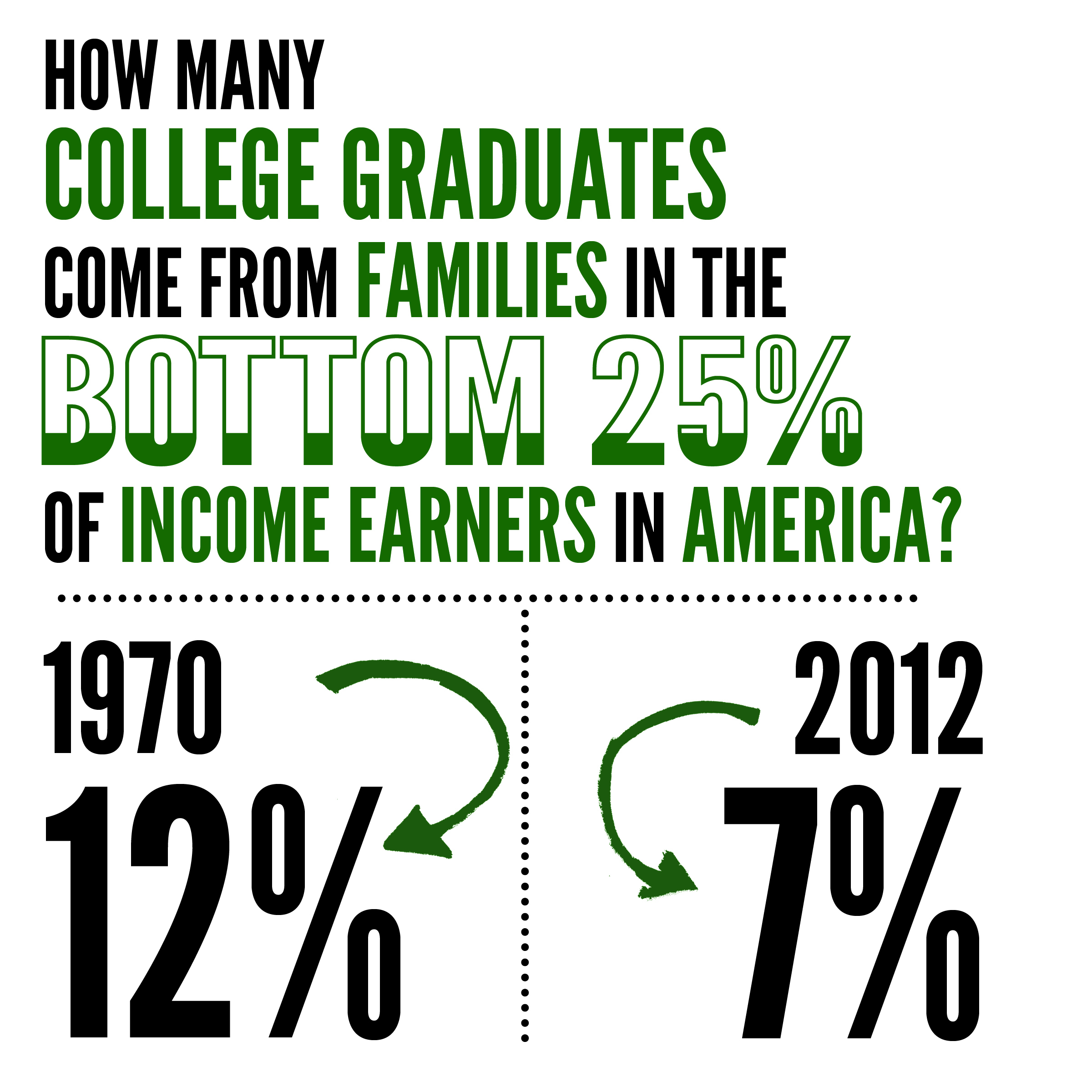 Consider that 12 percent of college graduates in 1970 came from the families in the bottom 25 percent of income earners, but today that percentage is 7 percent according to Richard Vedder, director of the Center for College Affordability and Productivity at Ohio University and an adjunct scholar with the Mackinac Center for Public Policy.