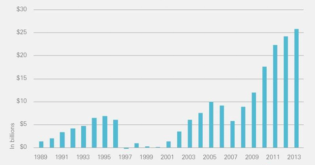 In a report this summer, the Michigan Senate Fiscal Agency notes that an “extra” payment of $108 million was included in the budget for fiscal year 2014-15. While $108 million is a sizable sum, it barely makes a dent. The accrued liability for MPSERS, the amount taxpayers have to pay just to catch up, is $25.8 billion. Naturally, the pension system represents a huge issue when $108 million fixes only about 0.4 percent of the problem.