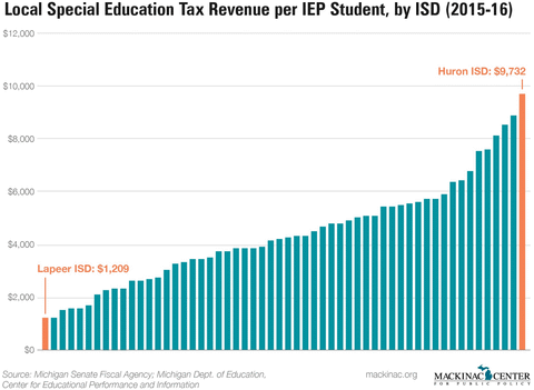 Every ISD, which taxes local business and homeowners, has a different tax base and its own tax rates. This creates a wide gap in how much local funding an ISD has. In 2016, local special education millages collected for each special-needs student anywhere from about $1,200 to $9,700. Statewide, ISDs collect an average of $4,650 in special education tax revenue for each student who has a federally required Individualized Education Plan (IEP).