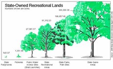 If the state sold off the 590,000 acres (14,312) lots that comprise recreational or recreation-related lands at the per-lot sales price mentioned above, the it could raise more than $18 million in new revenue. Recreational land may include gaming areas, state parks, hatcheries, fairgrounds, and water access sites as highlighted in the DNR's biennial real estate report. MPR includes hatcheries in the "recreation" category because of its relationship to sport fishing, and the fact that these institutions could be privatized.