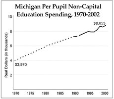 A proposal likely to appear on the November ballot would change Michigan law to mandate annual inflationary education expenditures. But the results of government education spending over the last several decades have shown little that would lead us to think simply spending more would improve schools. In large part, this is because schools generally operate without significant institutional incentives for producing improved results.