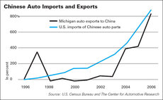 The Chinese demand for Michigan vehicles and auto parts grew exponentially, from $41.6 million in 2001 to $446 million in 2006. Other important growing markets in China for Michigan products include inorganic chemicals, machinery, medical instruments and soap.