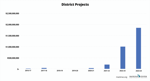 The large number of district projects tells us that elected officials are behaving badly. One way to encourage better behavior is to expect them to practice restraint. Under a Sustainable Michigan Budget limit, the budget grows at no more than the inflation rate plus the population growth rate. This would ensure there’s not a lot of extra money sitting around to be used for district grants.