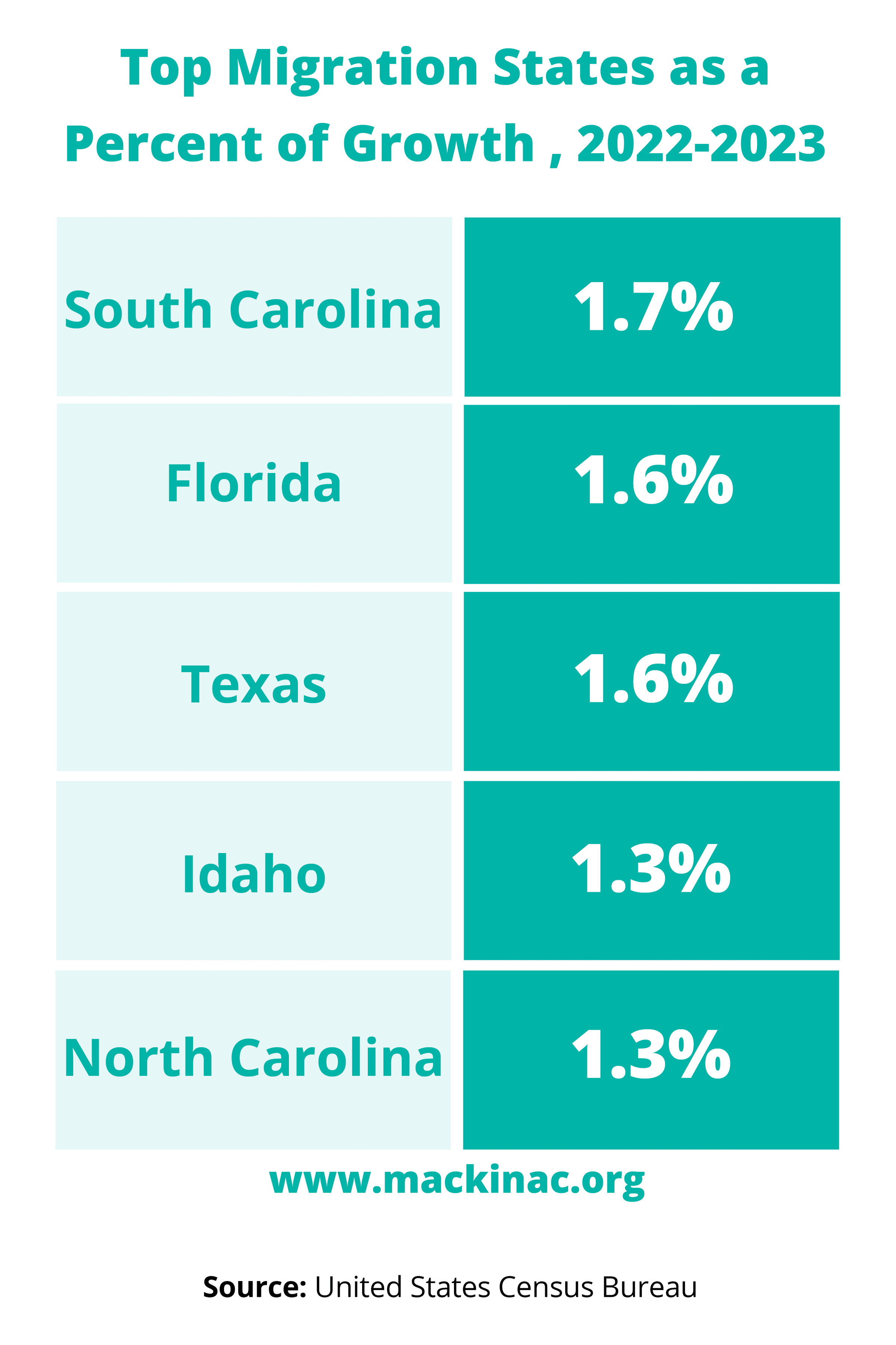 Populations rise and fall across states over time. There are only a few factors that impact the rate of change of a state’s population, but inbound migration from other states is a big one. For a number of reasons, people choose to move to or from particular states. Michigan’s population has been, at best, stagnant when it comes to this type of migration.