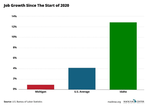 Michigan’s added 39,000 jobs since February 2020, a 0.9% gain. That’s well below the 4.2% national average. Michigan is ranked 40th in job growth. Jobs in Idaho, the fastest growing state by this measure, are up by 12.9%.