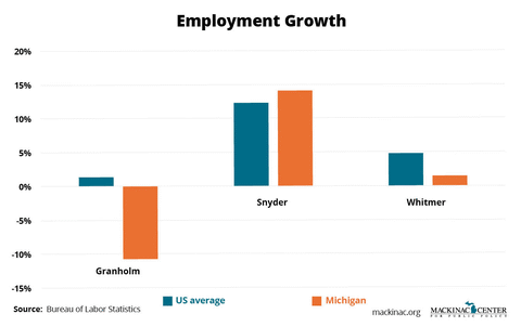 Michigan has beaten the national average in employment growth in the past. It ought to in the future. Let’s hope Whitmer and whoever succeeds her approve policies that will improve opportunity and liberty in the state.