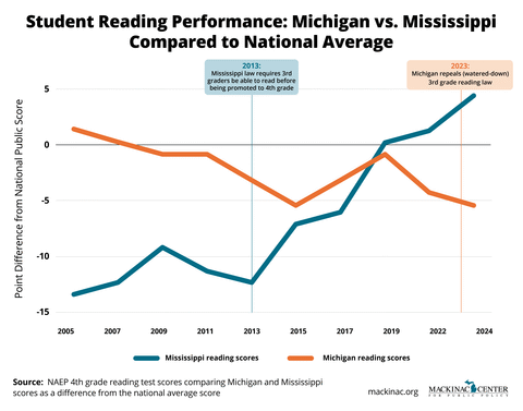 Mississippi’s fourth grade reading scores are soaring thanks to school reforms that are driving student success. Michigan is lagging far behind after eliminating similar reforms. It's time lawmakers and school leaders take note of policies that work to improve student achievement.
