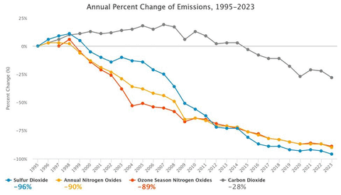 [6] Environmental Protection Agency, “Progress Report - Emissions Reductions - Annual Percent Change of Power Plant Emissions.” Retrieved July 19, 2025 from https://www.epa.gov/power-sector/progress-report-emissions-reductions#co2