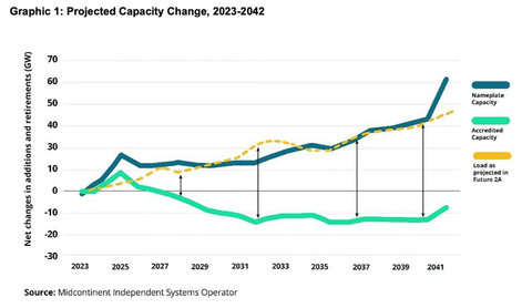 Looking forward, Mackinac Center research indicates that the rush to retire reliable baseload generation sources will leave the Midwest chronically undersupplied, as accredited and reliable generation capacity is making up an increasingly smaller portion of the region's electricity supply.[19]