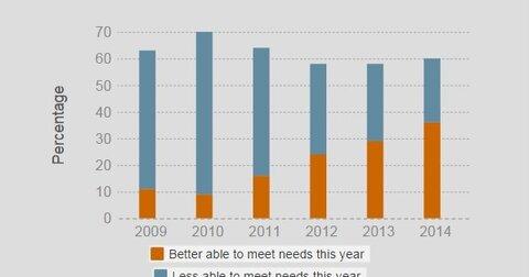 A new survey of communities from the Center for Local, State and Urban Policy at the University of Michigan shows an uptick in the percent that say they are better able to meet their fiscal needs. This is good as it generally tracks with an improving state economy, but there are some warning signs ahead.