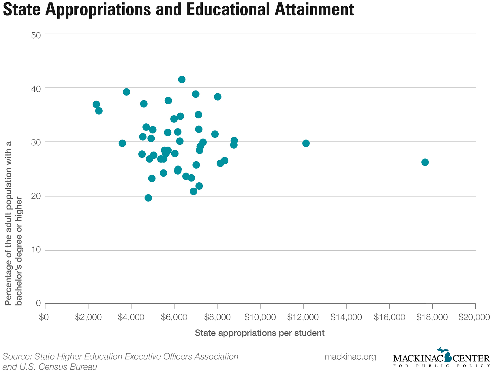 State universities charge tuition to their students, but the institutions also receive direct taxpayer dollars. Some states spend spend more taxpayer dollars on their universities than Michigan does. And there are states that have a more credentialed population than Michigan. There isn’t a connection between the two.