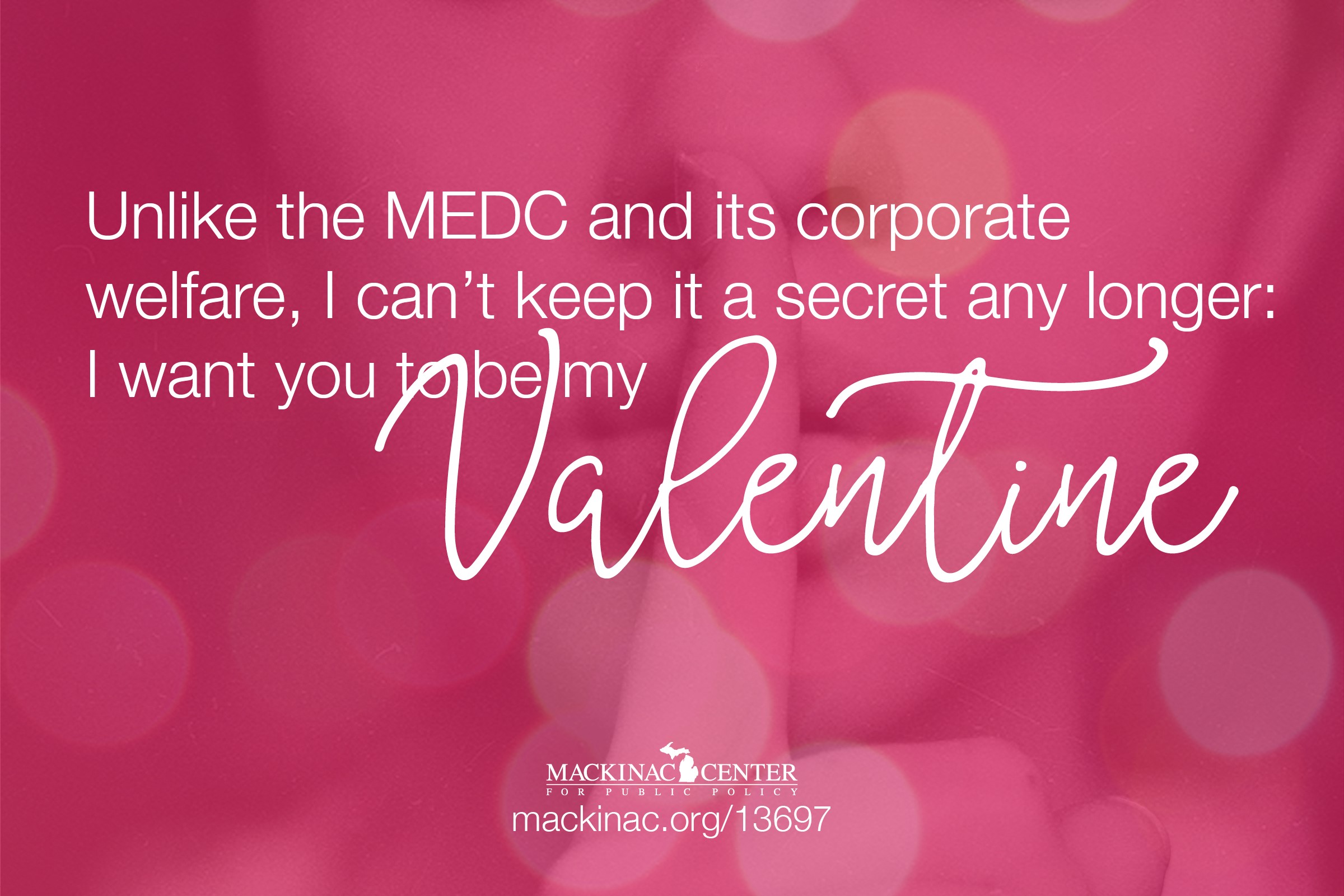 Unlike the MEDC and its corporate welfare, I can't keep it a secret any longer: I want you to be my Valentine. (Read more here).