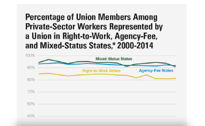 Further, Mackinac Center research provided to the Supreme Court in two amicus briefs (available here and here) on the similar and related Friedrichs case has shown that in right-to-work states, only about 20 percent of unionized workers exercise these rights, meaning that unions in these states still have the financial support of about 80 percent of workers on average.