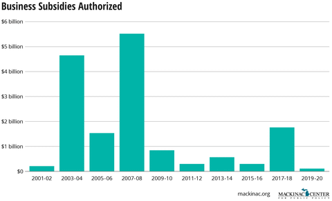 This Legislature, whose session started in 2019 and ends later this year, has approved just $151 million in new business subsidies. This is the lowest amount in any fiscal year since 2001. The next lowest amount was the 2001-02 Legislature, which approved $224.3 million in business subsidies.