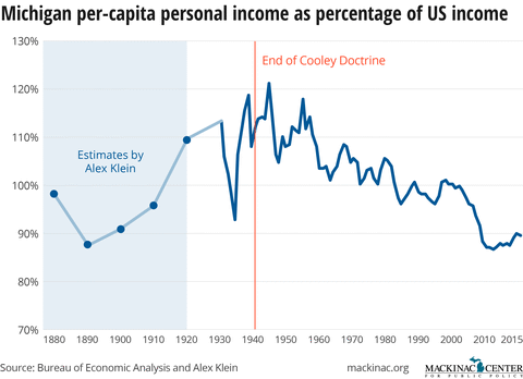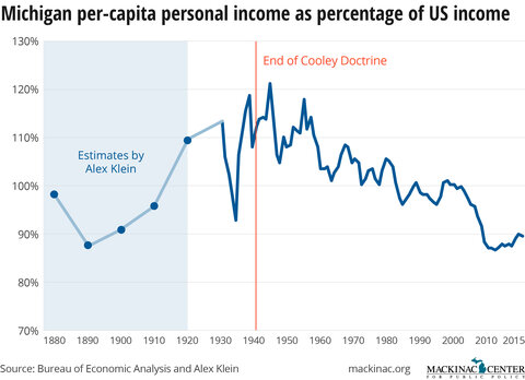 It used to be illegal in Michigan to use taxpayer money to benefit a private person or group. This was the "Cooley Doctrine," established by one of Michigan's most revered Supreme Court justices, Thomas Cooley. It guided state and local policy from 1870 until it was brushed aside and ignored, starting in 1941. A recent Mackinac Center study explains this legal history in detail.