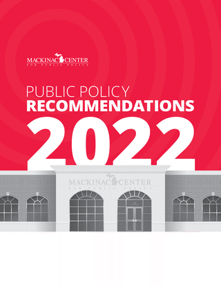 This document contains a brief description of the policy priorities of the Mackinac Center for Public Policy in 2022. These recommendations include maintaining a fiscally responsible state government, providing more choice and flexibility in schooling, containing health care costs and injecting competition into that sector, ensuring affordable and reliable energy and environmental protection, improving transparency for government and reining in harmful regulations.